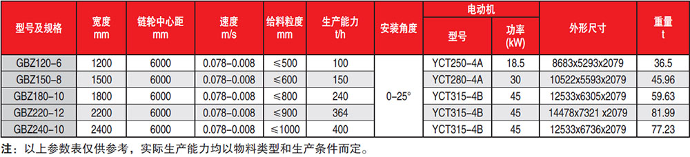 板式給料機是破碎工藝輔助設(shè)備——固定式給料機械。由料倉向初級破碎機連續(xù)和均勻給料,也可用于短距離的物料輸送。尤其適用于輸送比重較大、粒度較粗、磨損性強的物料。并能在露天、潮濕等惡劣條件下可靠地工作。在冶金、礦山、水泥、建材等領(lǐng)域廣泛應用。該機可水平安裝,也可傾斜安裝,最大傾角為25°。 Plate feeder is the auxiliary equipment for crushing process--Fixed feeder. It feeds materials continuously and evenly from the feed bin to the primary breaker, and it can also be used for material conveying in a short distance. It is especially suitable for conveying the material with big proportion, coarse granularity, and strong abrasiveness. Besides, it can work reliably outdoors, in moist and other bad conditions. It is widely applied in metallurgy, mine, cement, and building material. It can be installed horizontally or at an angle. The maximum angle of inclination is 25°.